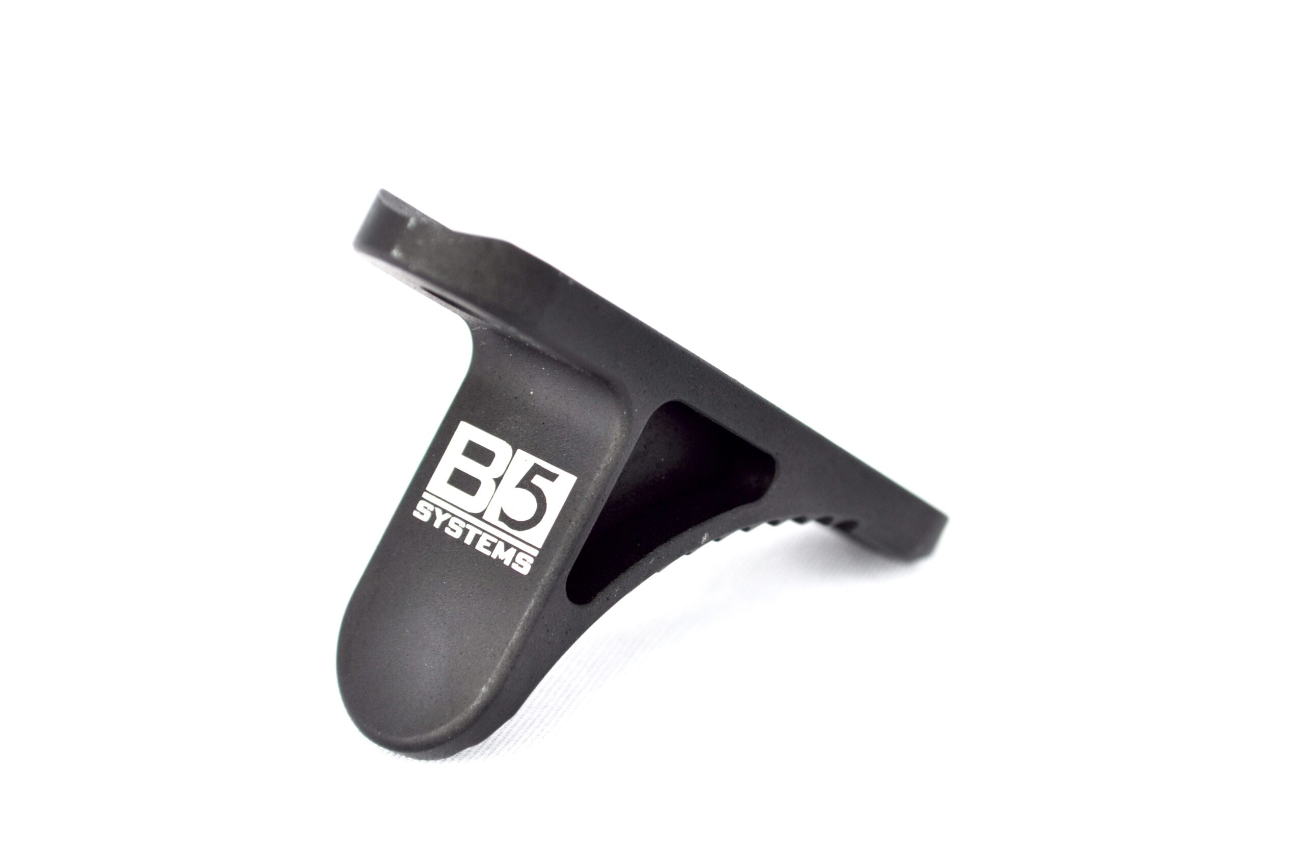 The B5 systems Gripstop was developed several years ago by a Marine combat veteran to benefit a wide variety of different shooting styles. The lightweight, one piece aluminum construction of the Gripstop holds up against the toughest abuse, and also fits a wide variety of different firearms, including rifles, carbines, sub-machine guns, and shotguns. It’s unique design allows the shooter to “pull” the firearm rearward into the shoulder pocket, and maintain a solid purchase on the gun with the support hand. It also works well as a barrier-stop against walls, automotive frames, and barricades. The Gripstop allows end users the ability to install onto a wide range of hand-guards and forearms, including M-LOK, Keymod and those with 2 3/8″ spaced threaded holes or slots. It is available in both standard (long) and “k” (short) models to match individual shooting preferences.