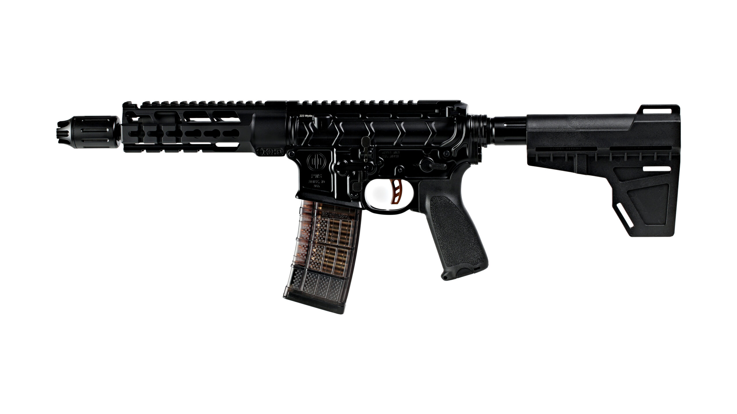 As of June 1, 2017, PWS switched from the Maxim EXC system to the KAK Shockwave Blade which allows users to have more flexibility to switch braces based on their preferences. The updated pistol system features the PWS MOD 2 Enhanced Pistol Buffer Tube as well as the ZEV SSR Trigger.